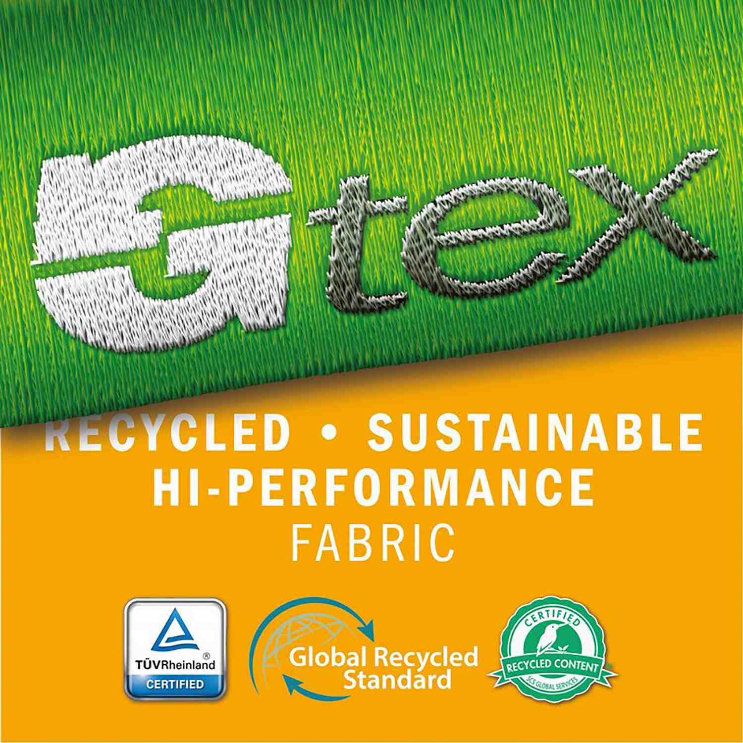 G-Tex Sustainable Fabric: Hewn from recycled bottles and packaging, this industry-first fabric provides elite durability and water resistance while being a responsible choice for the environment.