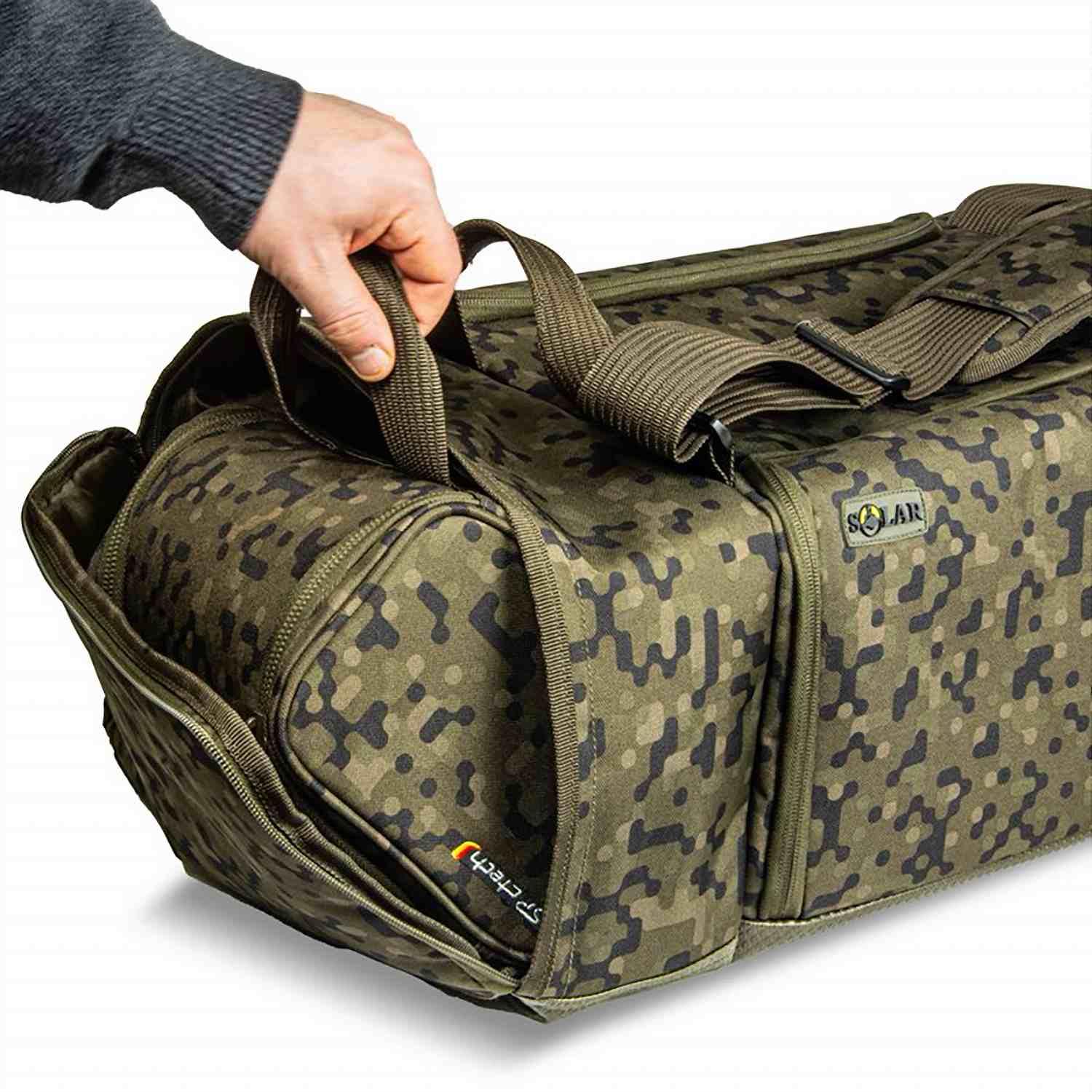 • Heavy-Duty Hardware: Fitted with the same oversized, smooth-action zips found on Solar’s rod holdalls, this bag is designed to handle being stuffed to capacity without the risk of zip failure.