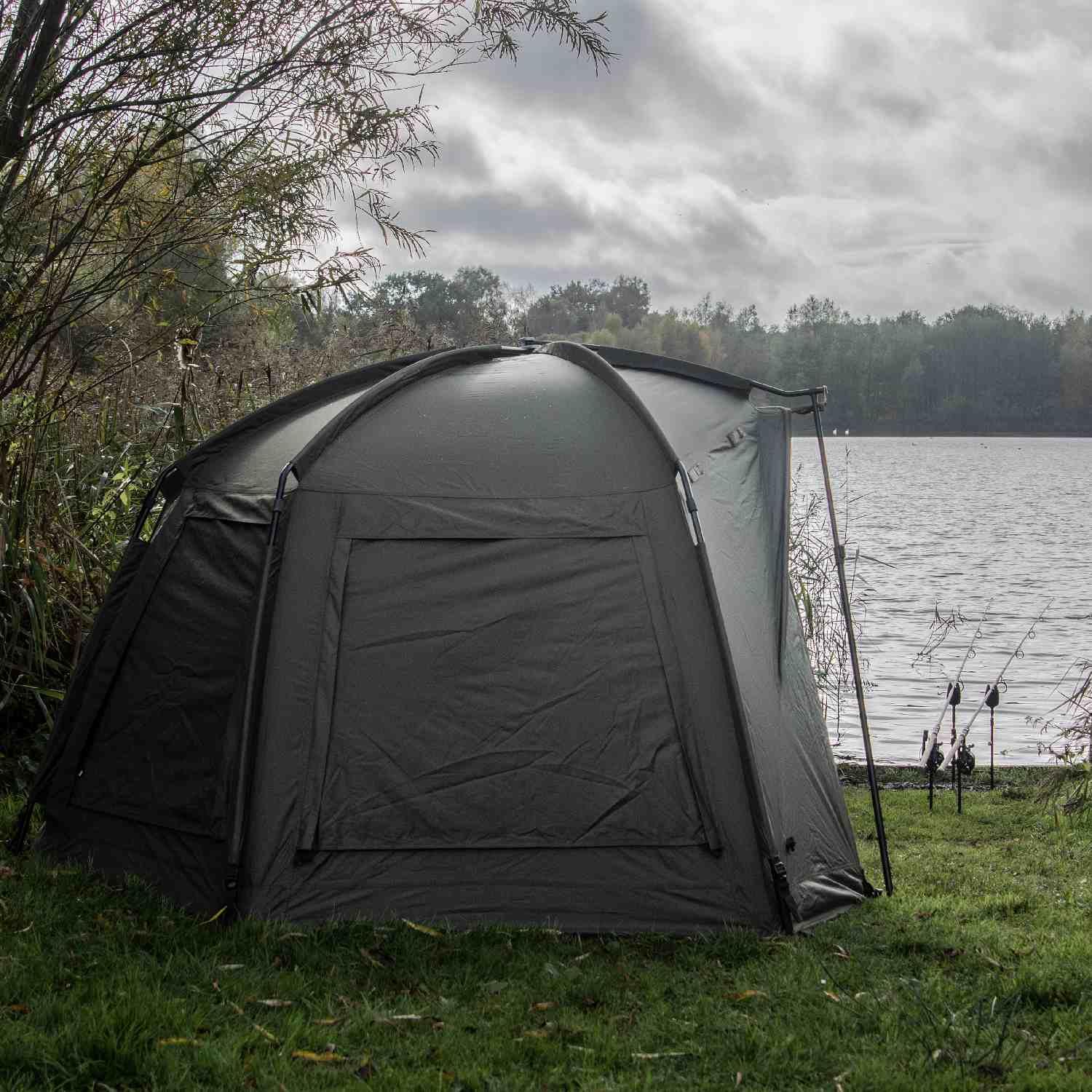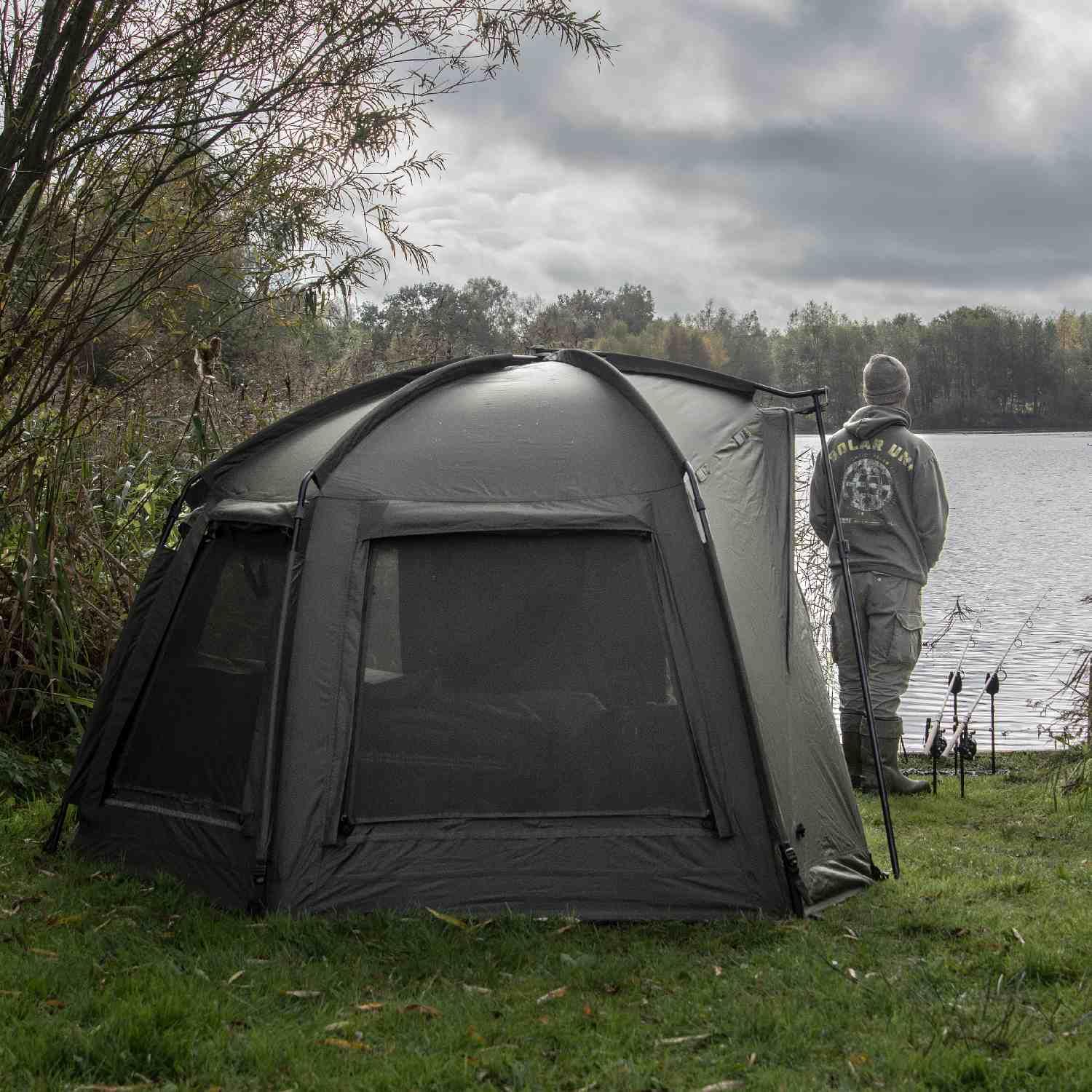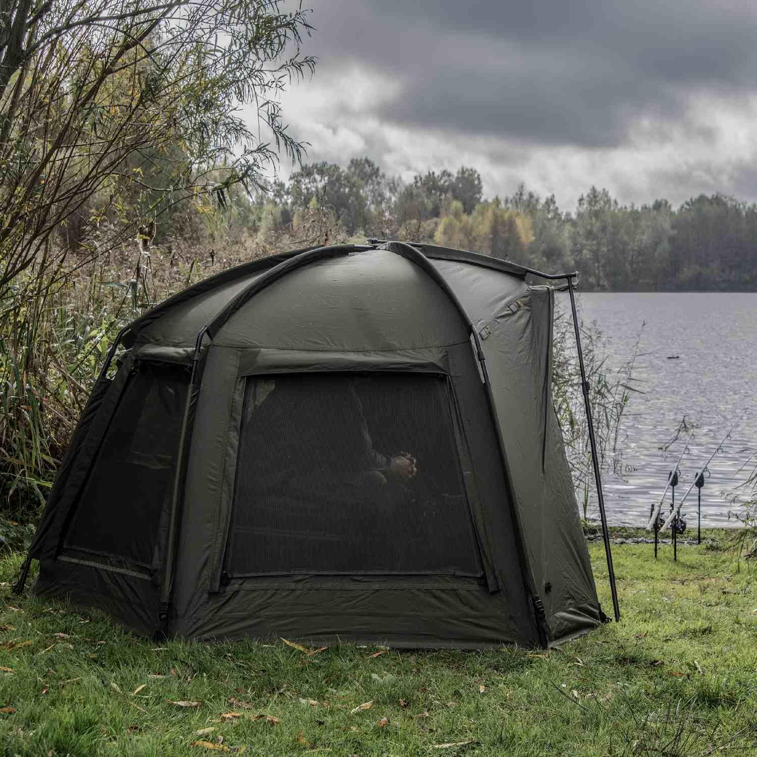 The square footprint and high-density frame allow for maximum internal volume. Even with a wide bedchair pushed to the rear, there is ample space for a guest chair, social table, and multiple luggage items, making it the definitive choice for the dedicated session angler.