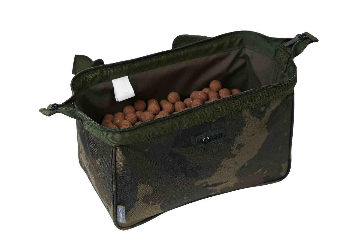 Yes, it features a heavy-duty Solar zip so you can secure your bait while walking to the lake or during transit in the car, preventing any spills in your boot.