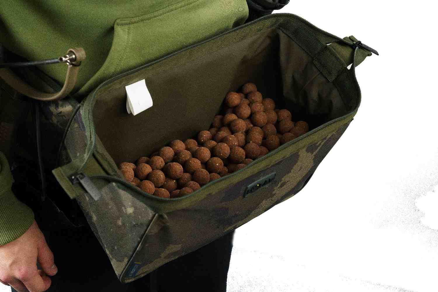 Whether you’re “creeping and peeking” along the margins or wading out to reach a distant spot, this pouch sits comfortably on your waist, giving you instant access to your bait. Constructed from the legendary 600D PU-backed Worldwide Camo material, it features a fully welded PVC inner. This is a game-changer; it means you can use “wet” baits—glugged boilies, soaked pellets, or even slimy particles—without a single drop leaking through to your clothing or ruining the outer bag.