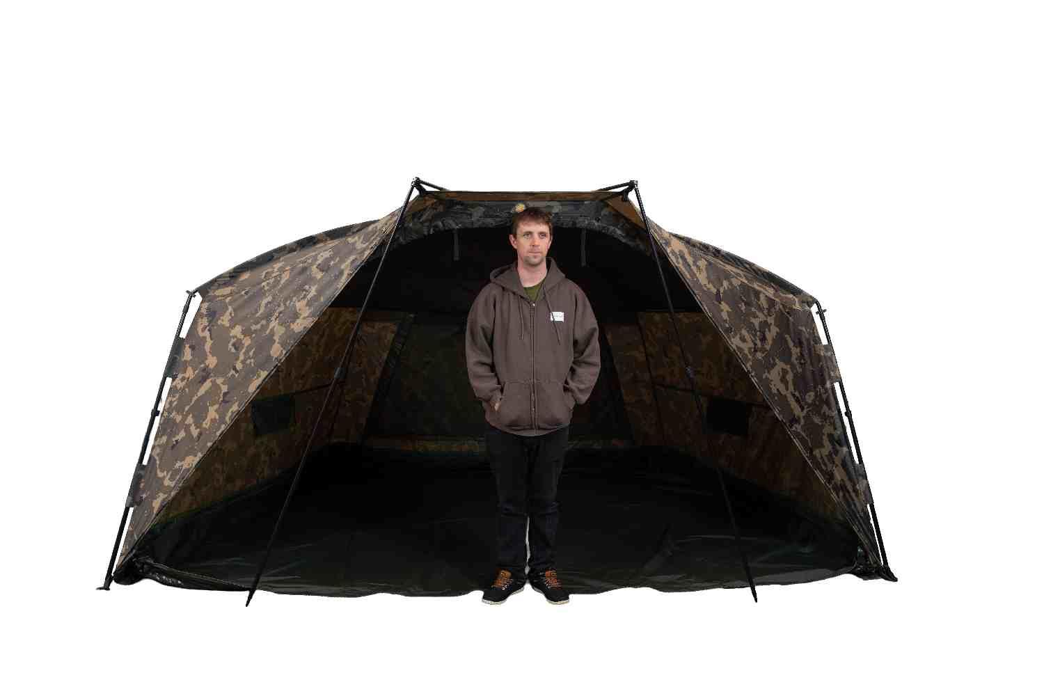 Fishing with a Partner: At 4m wide, you can easily fit two standard bedchairs in a “V” shape or parallel, making it a great social shelter.
