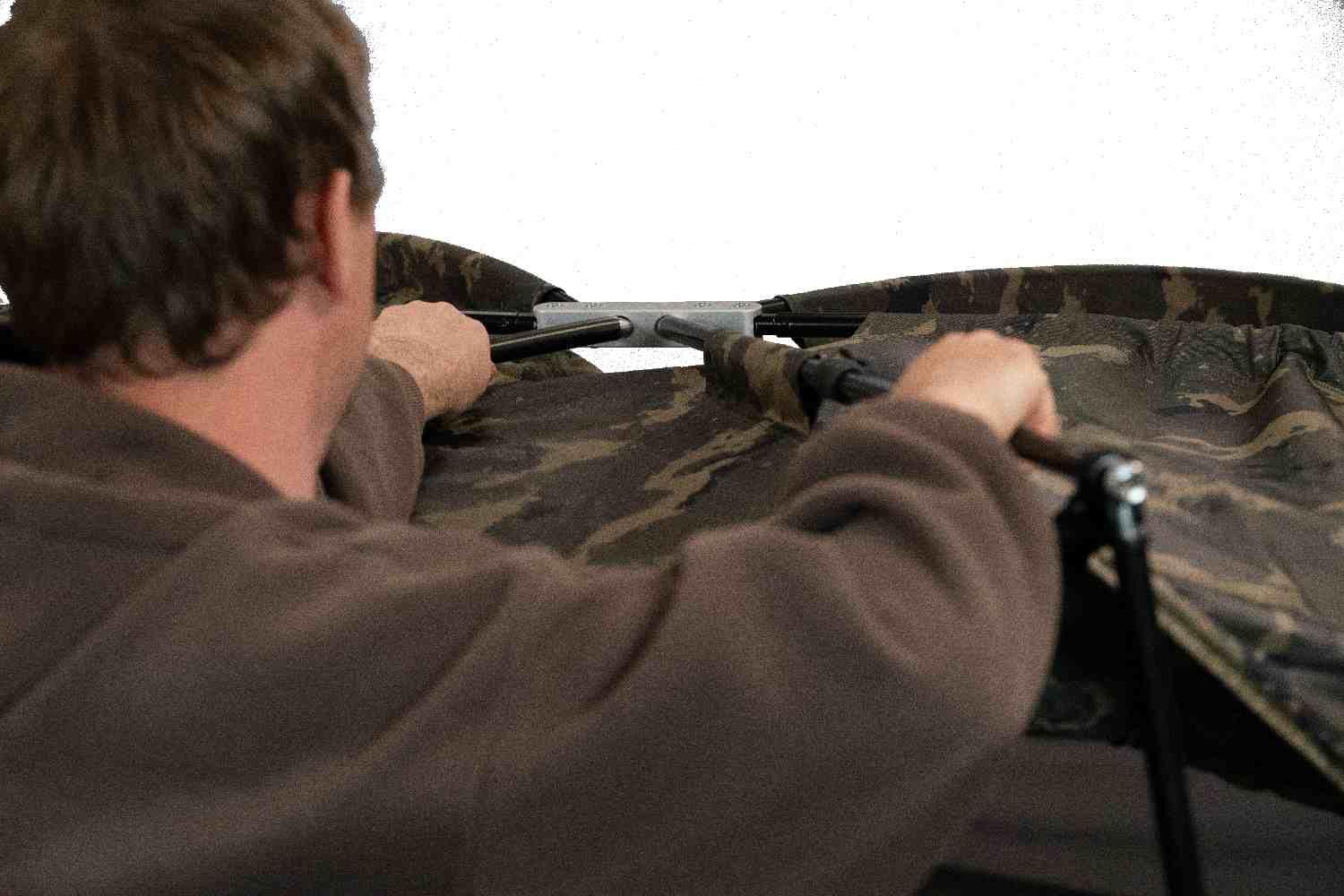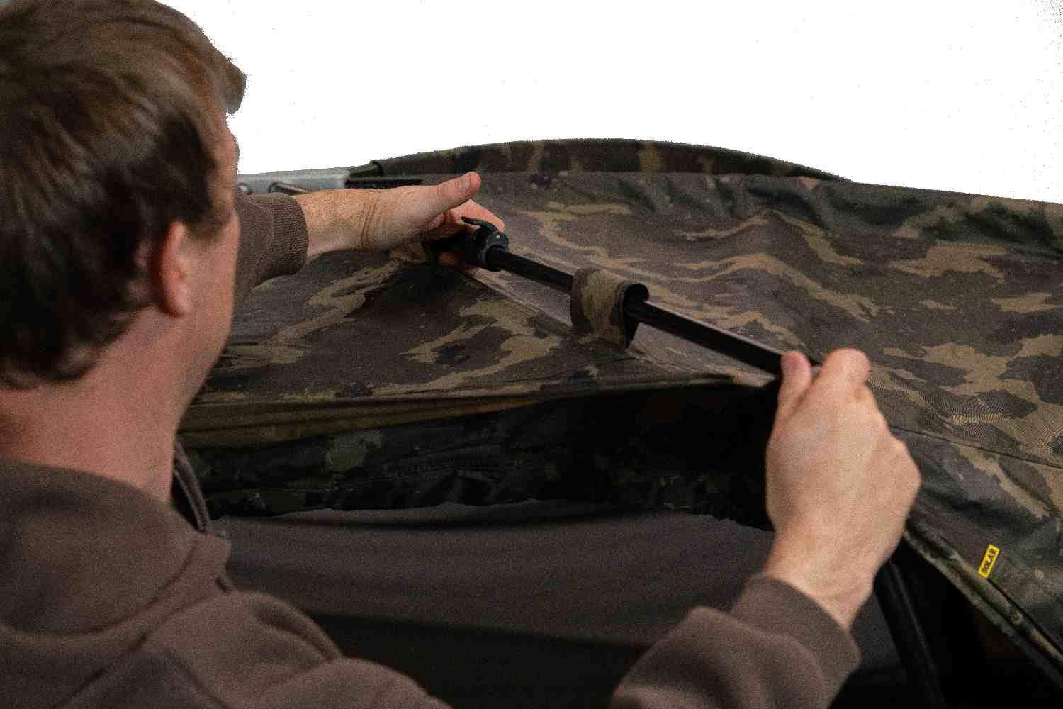First things first: the size. At 4 meters wide, this shelter is huge. The clever Flat-Back Design means you can push your bedchair right to the rear wall, opening up acres of floor space for your bags, table, cooking gear, and even a guest chair. Despite its size, setup is a breeze thanks to the TRS (Tension Reduction System). This smart feature takes the tension out of the poles when packing away or setting up, meaning no more wrestling matches with your bivvy at the end of a tiring session.