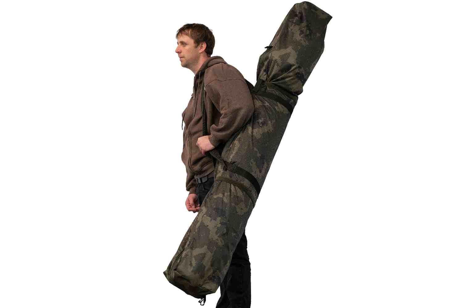 Heavy Duty Extras: Supplied with a heavy-duty Zip-In Groundsheet, pegs, and an oversized Camo Carry Bag.