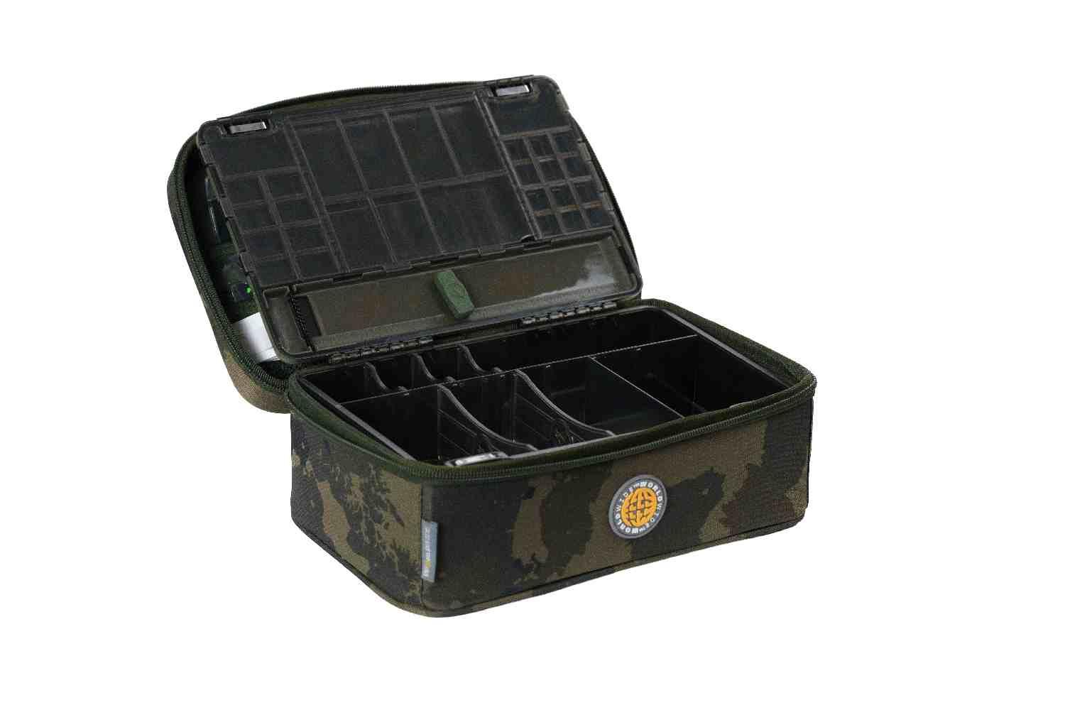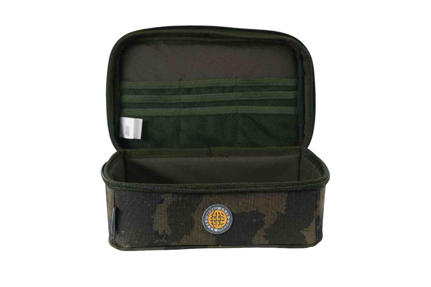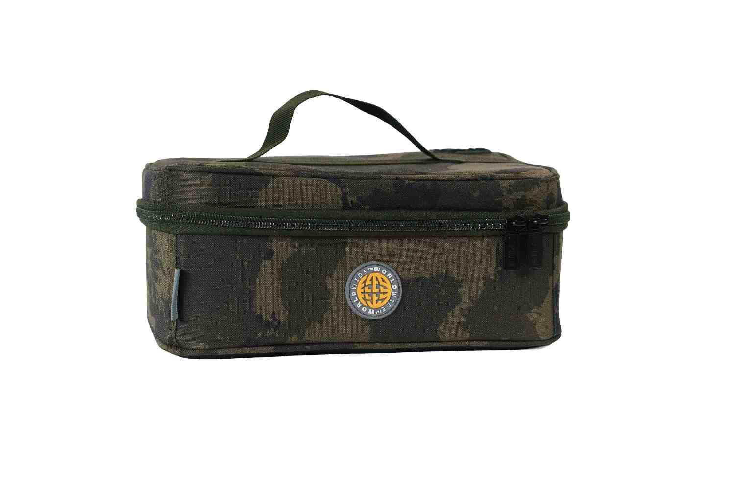 Wrapped in the signature Worldwide Camo 600D PU-backed material, this isn’t just another soft pouch. It features rigid sides that act like a protective shell, ensuring your delicate rigs and expensive tackle boxes don’t get crushed under a bedchair or in the back of the van. With its waterproof PVC base and wipe-clean interior, it’s built to survive the grit and grime of the bank while keeping your gear in mint condition.