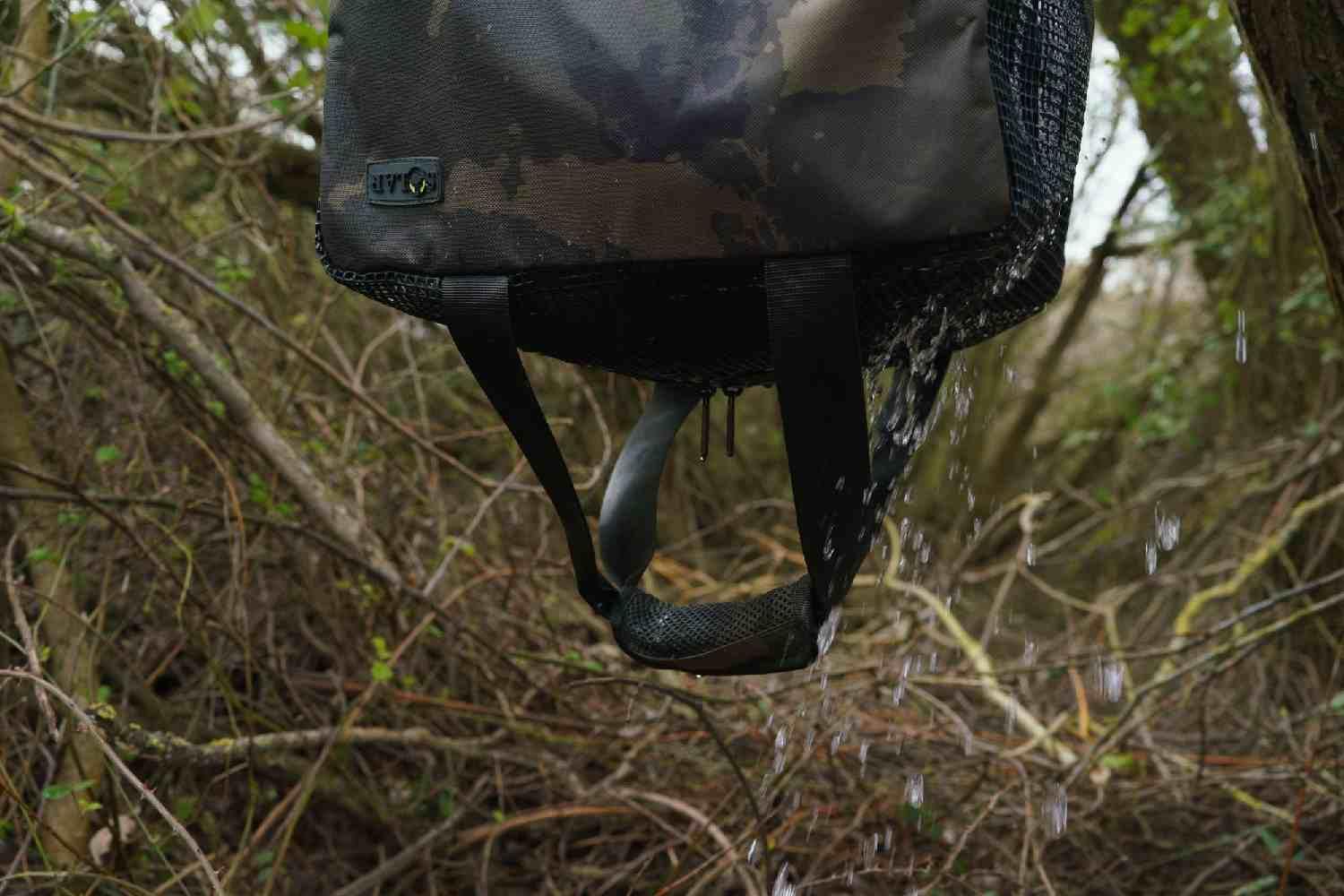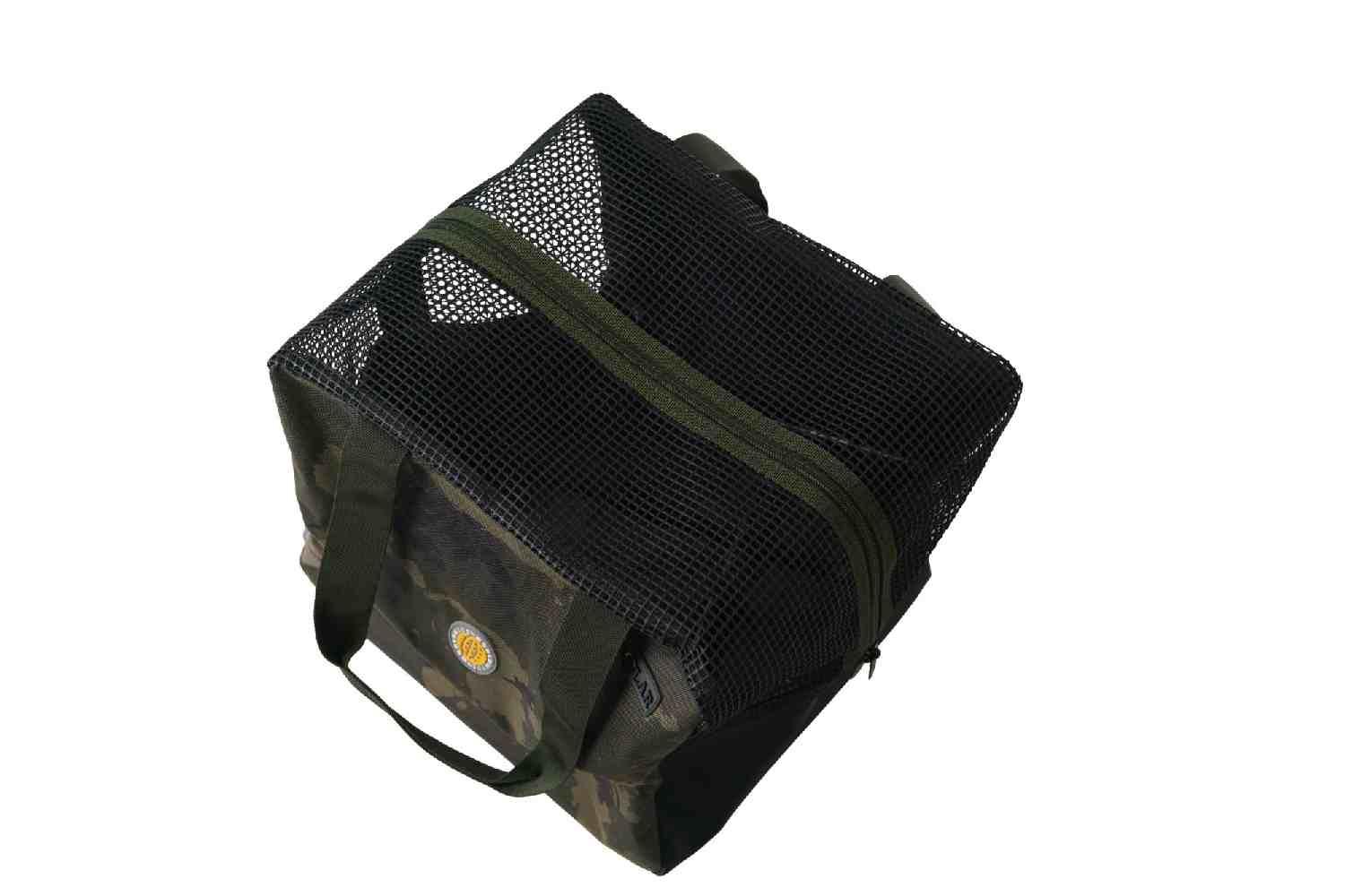 Clad in the rugged Worldwide Camo 600D PU-backed material, this bag is far more than a simple carrier. Solar has cleverly integrated rubberised mesh panels that promote constant airflow and drainage. This means your waders aren’t just sitting in a pool of stagnant water; they are actively airing out from the moment you take them off. Combined with a heavy-duty waterproof PVC base, you can sit this bag on the wettest ground or in your boot without a single drop of mud escaping.