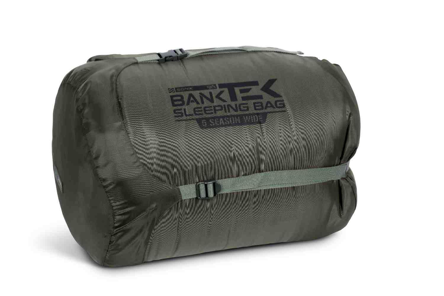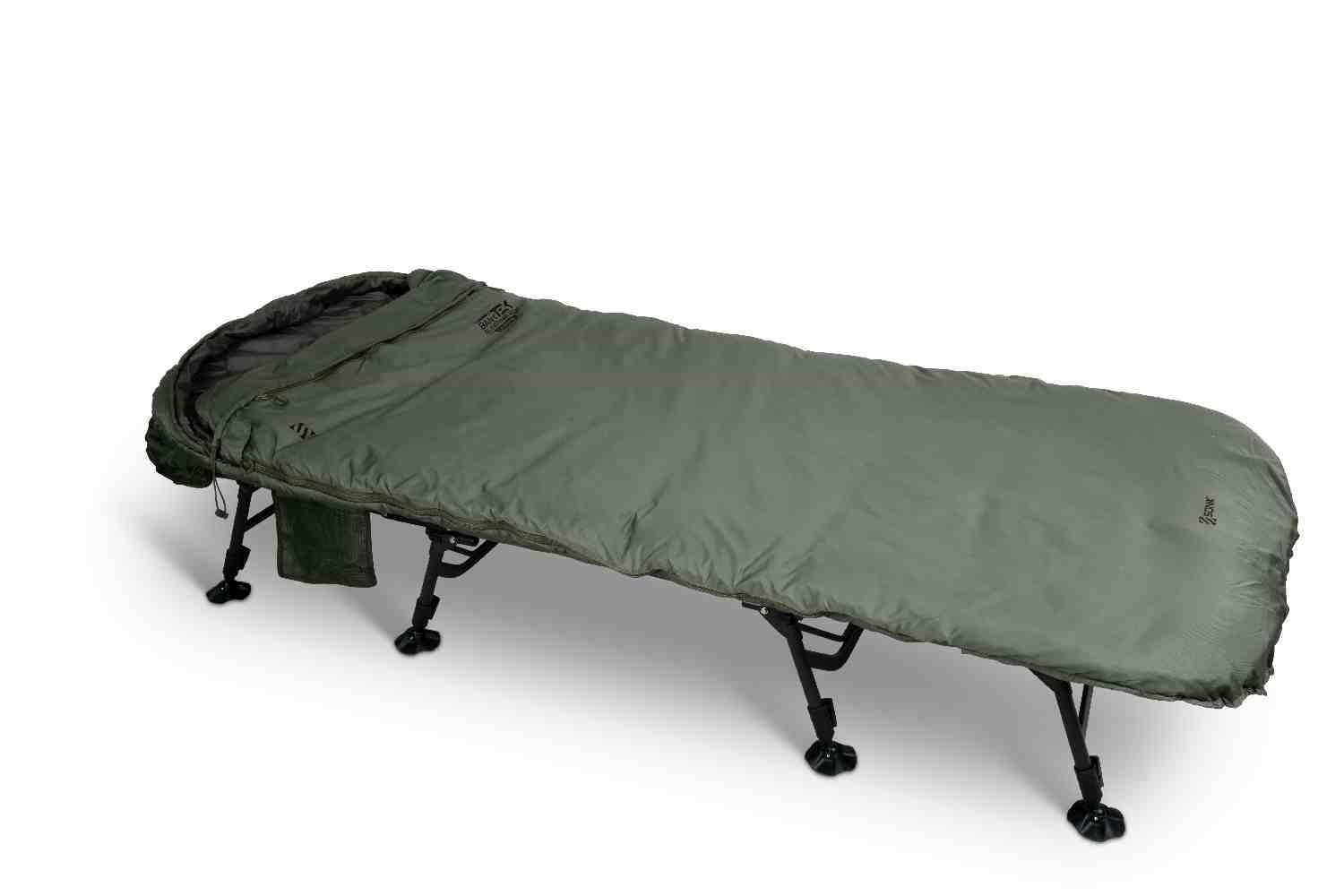 The Bank-Tek 5-Season Sleeping Bag Wide offers maximum insulation for all year round and is extremely efficient at keeping you warm. Designed specifically to fit wide bedchairs it is constructed from water resistant, hard wearing and breathable 190T ripstop fabric. We have used quality materials throughout to make sure this bag performs season after season. The high-quality silicone treated hollow fibre fill maintains its loft for maximum heat retention. A new hood design gives maximum versatility and allows enough movement for the bag to form around you no matter what your preferred sleeping position. There is a fleece lined upper for warmth and a smooth polyester lined base for easy movement inside the bag. With an additional smooth polyester stubble guard neck lining, the head and foot sections both have drawstrings that allow you to thicken the insulation and eliminate cold spots for a cosy night’s sleep. The last feature is a wide fold out mosquito head net which comes in very handy on those calm summer nights under the stars.