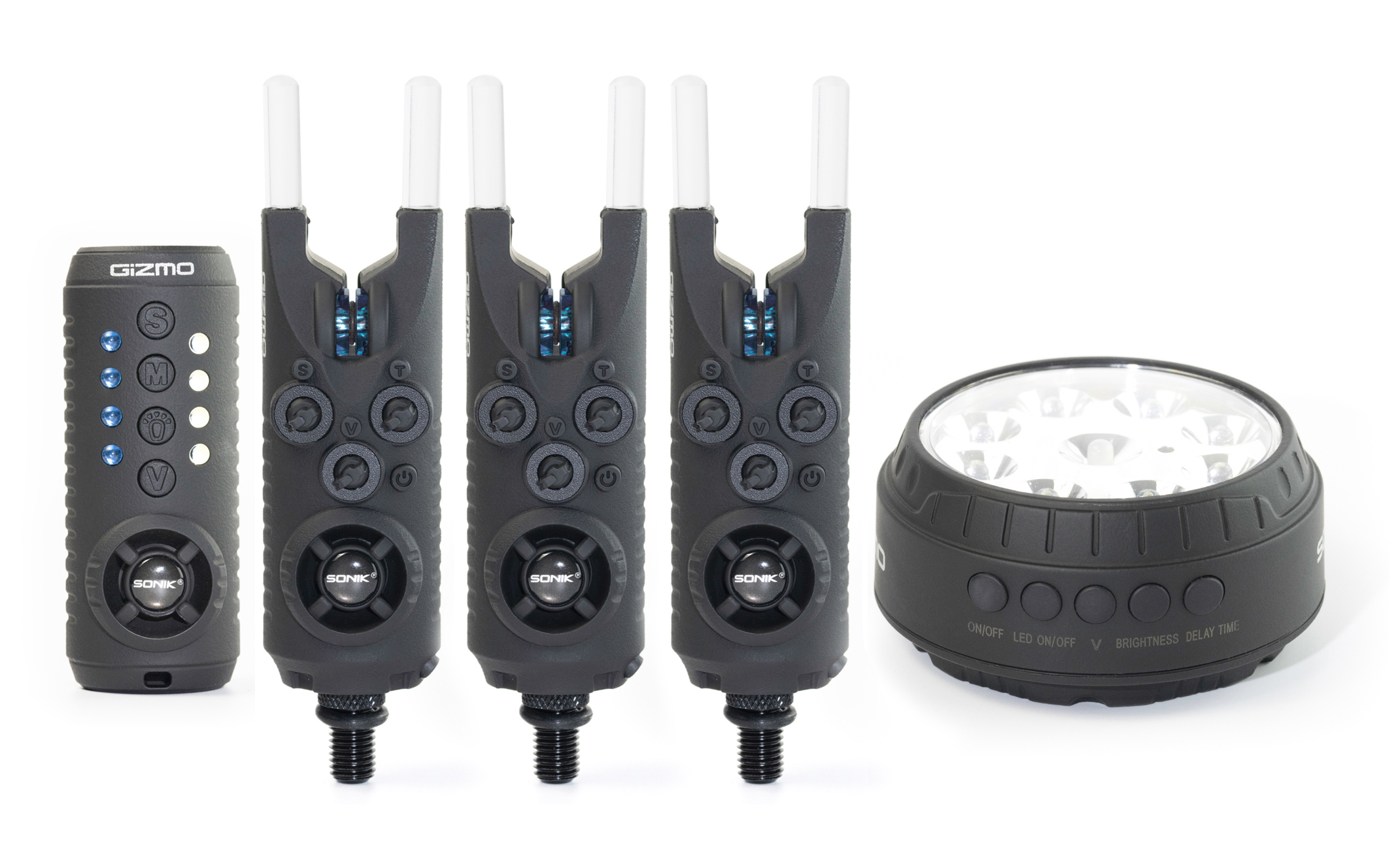 The GIZMO Bite alarm set now available in all blue. Same great alarm features and all four blue channels on the receiver.