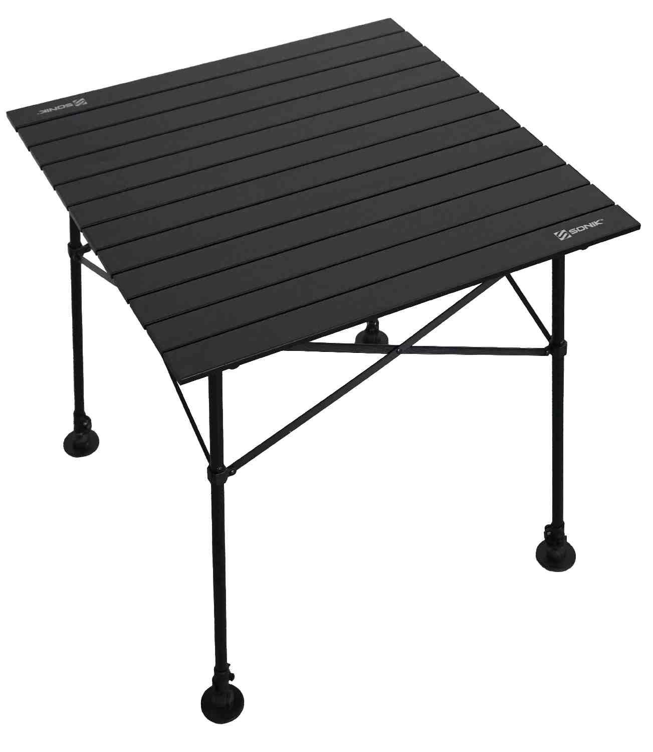 An adaptable, lightweight table that is perfect for long session anglers that need table space for cooking, working or socialising. The weatherproof roll out aluminium table top measures 70x70cm and all four legs feature swivel mud feet and are height adjustable, allowing you to level the table on uneven ground.