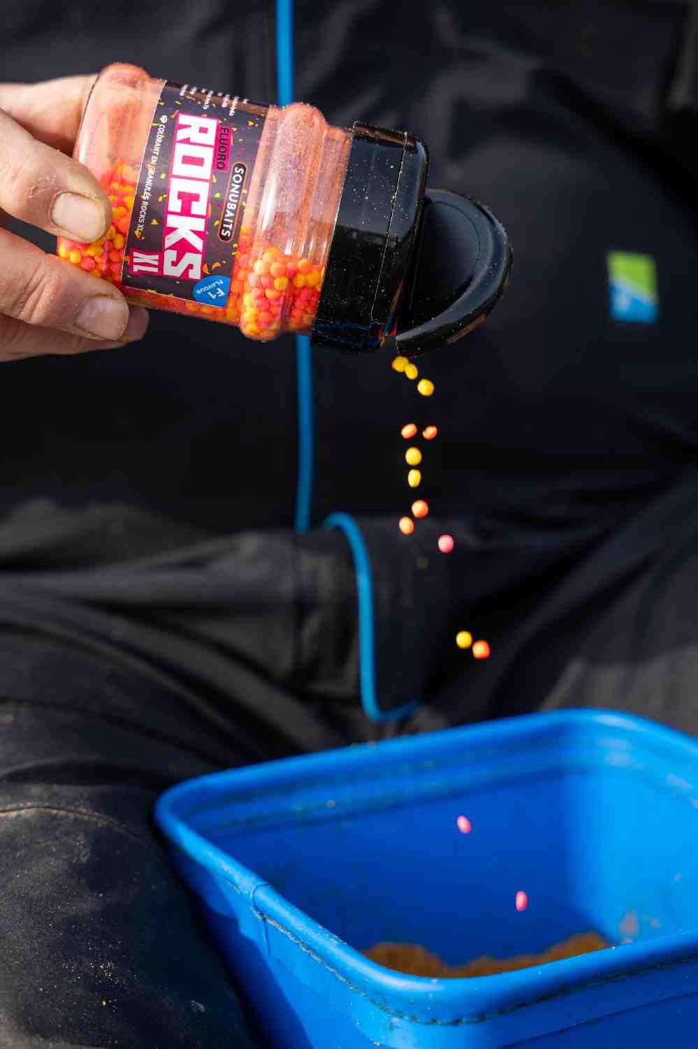 For the best results, add your Fluoro Rocks to your groundbait after you have finished mixing and sieving. This ensures they remain clean and vibrant on the outside, providing the sharpest possible visual contrast when they hit the bottom. If you’re fishing for F1s in the winter, just a tiny pinch (3-4 rocks) in the feeder is often enough to trigger a bite when the fish are feeding cautiously!