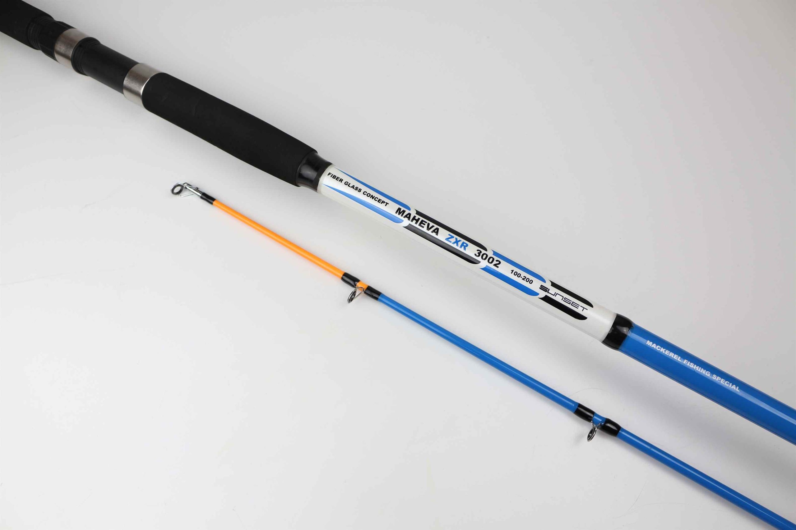 The SUNSET MAHEVA ZXR rods have a blank in two equal parts in “FGC Concept” fiberglass, a rubber knob, a solid black EVA foam grip, a chrome tubular reel seat, SiC ligated rings, a hollow tip, and an ABS case.