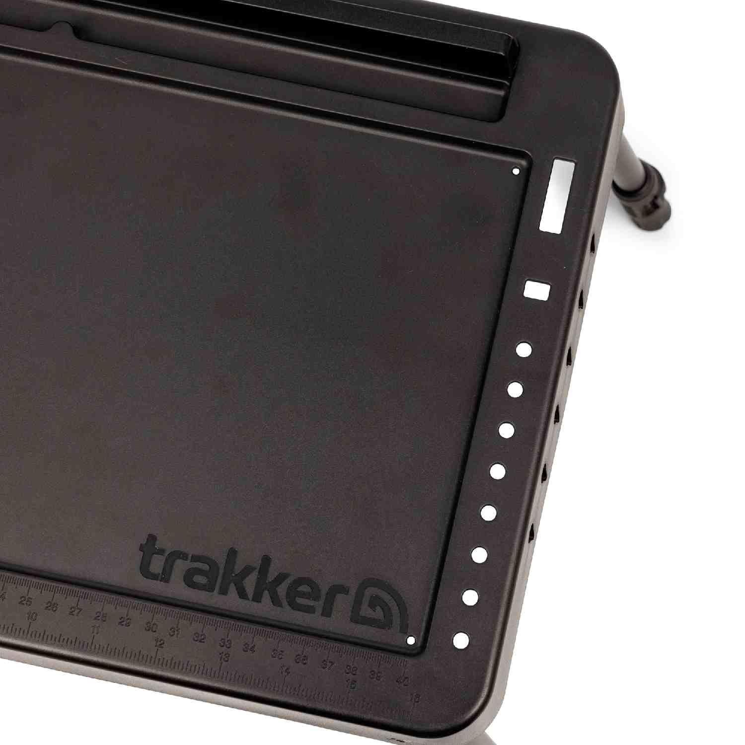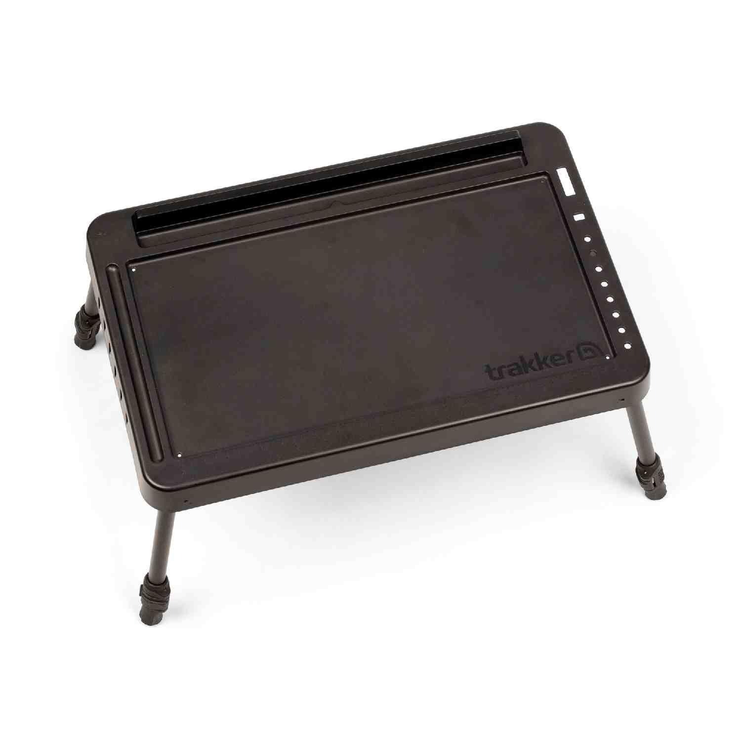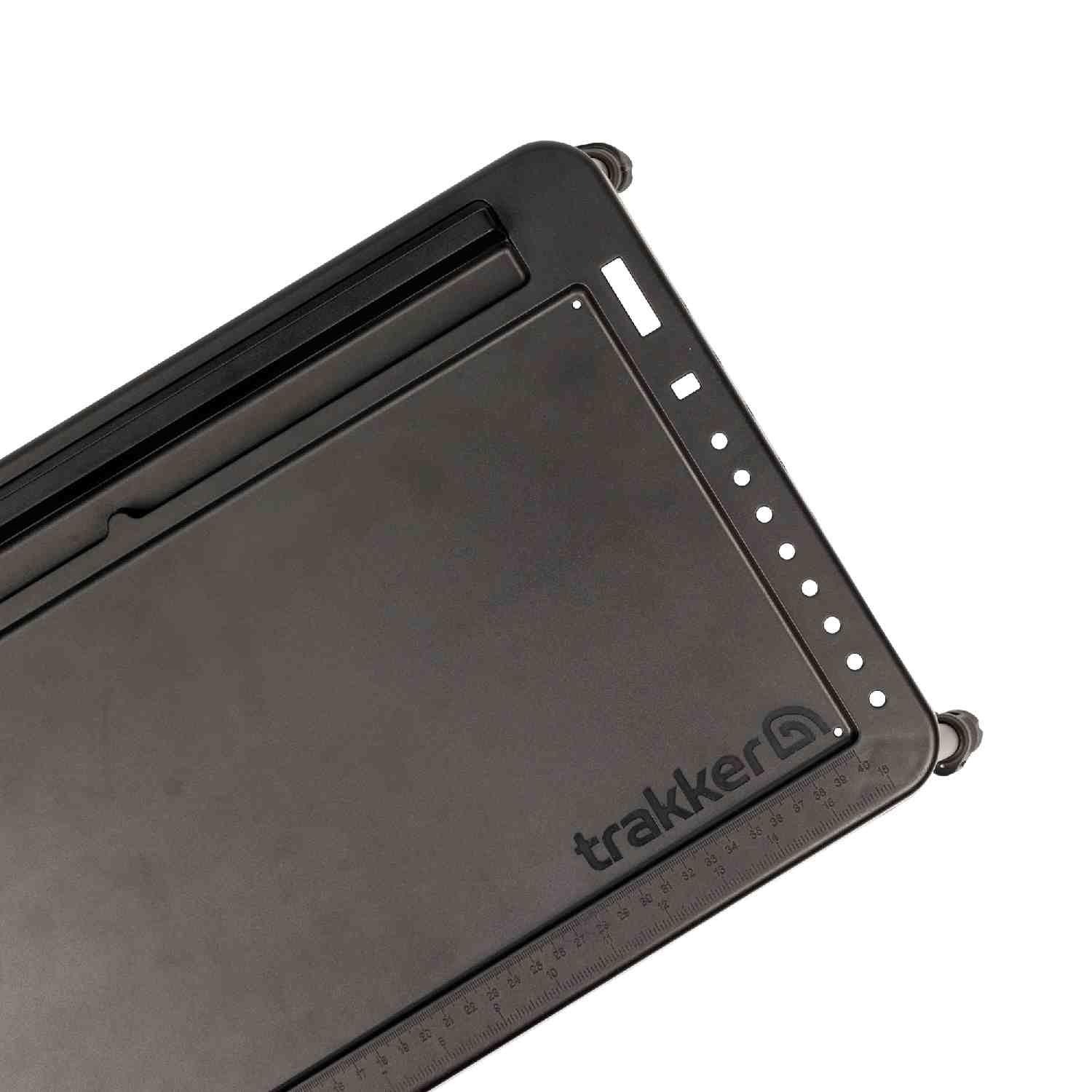 Featuring a deep recessed top, this table allows you to neatly organize your essentials and have your belongings to hand without the risk of items sliding off. One of the most innovative features is the long integrated slot at the rear, specifically designed to hold a tablet or smartphone upright. This is a game-changer for watching a movie during a slow night or keeping an eye on weather apps. Furthermore, the right-hand edge includes dedicated storage for the range of Trakker rig tools, while both short sides feature a convenient means of storing your pre-tied rigs.