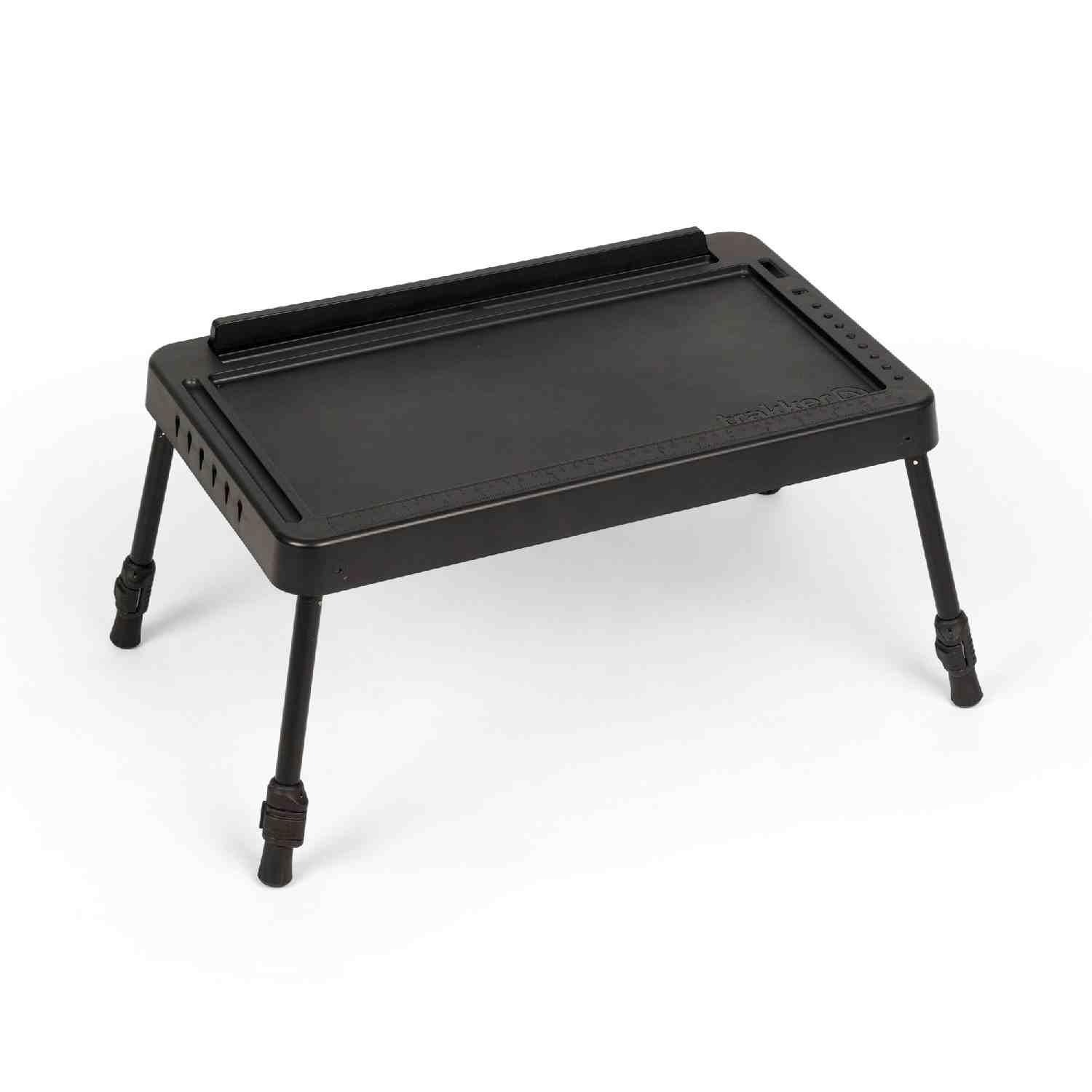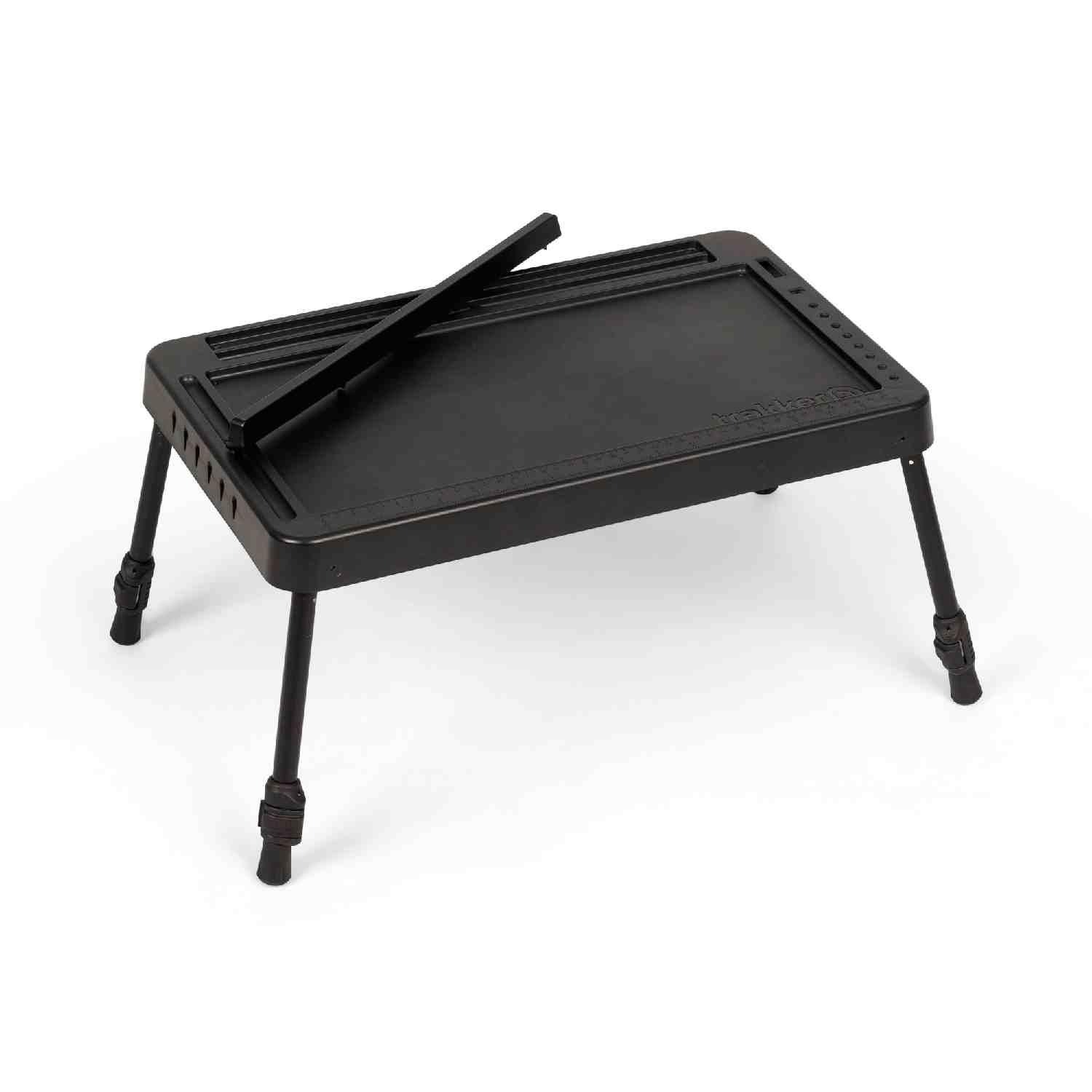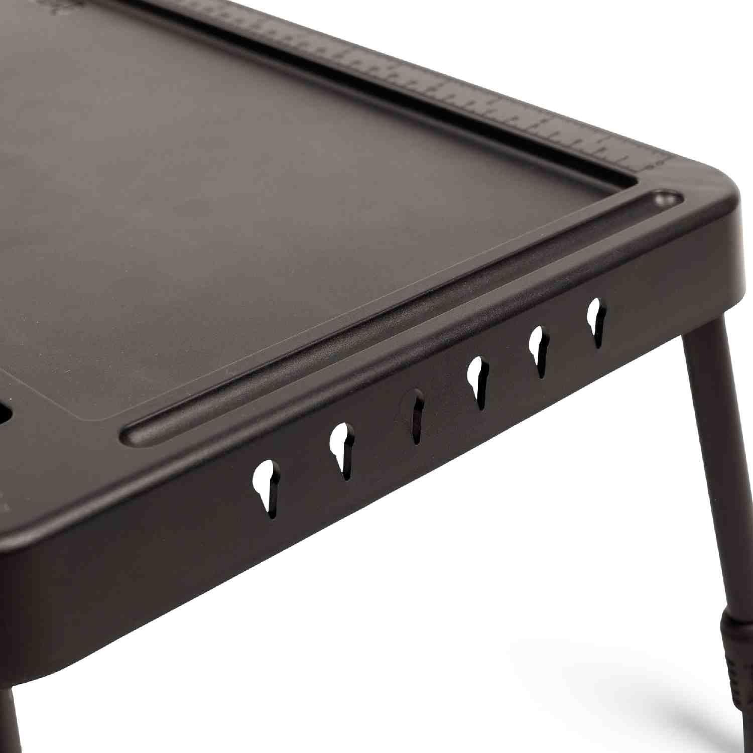 Featuring a deep recessed top, this table allows you to neatly organize your essentials and have your belongings to hand without the risk of items sliding off. One of the most innovative features is the long integrated slot at the rear, specifically designed to hold a tablet or smartphone upright. This is a game-changer for watching a movie during a slow night or keeping an eye on weather apps. Furthermore, the right-hand edge includes dedicated storage for the range of Trakker rig tools, while both short sides feature a convenient means of storing your pre-tied rigs.