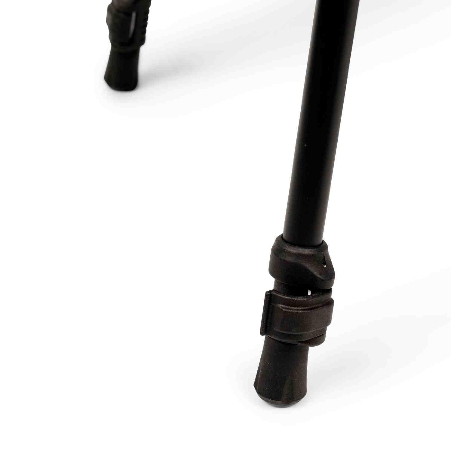 The legs use a simple, reliable folding mechanism that locks securely when fully extended. The height adjustment uses a standard twist-lock or spring-loaded system (depending on the specific production run) to ensure the table doesn’t collapse under the weight of your gear.