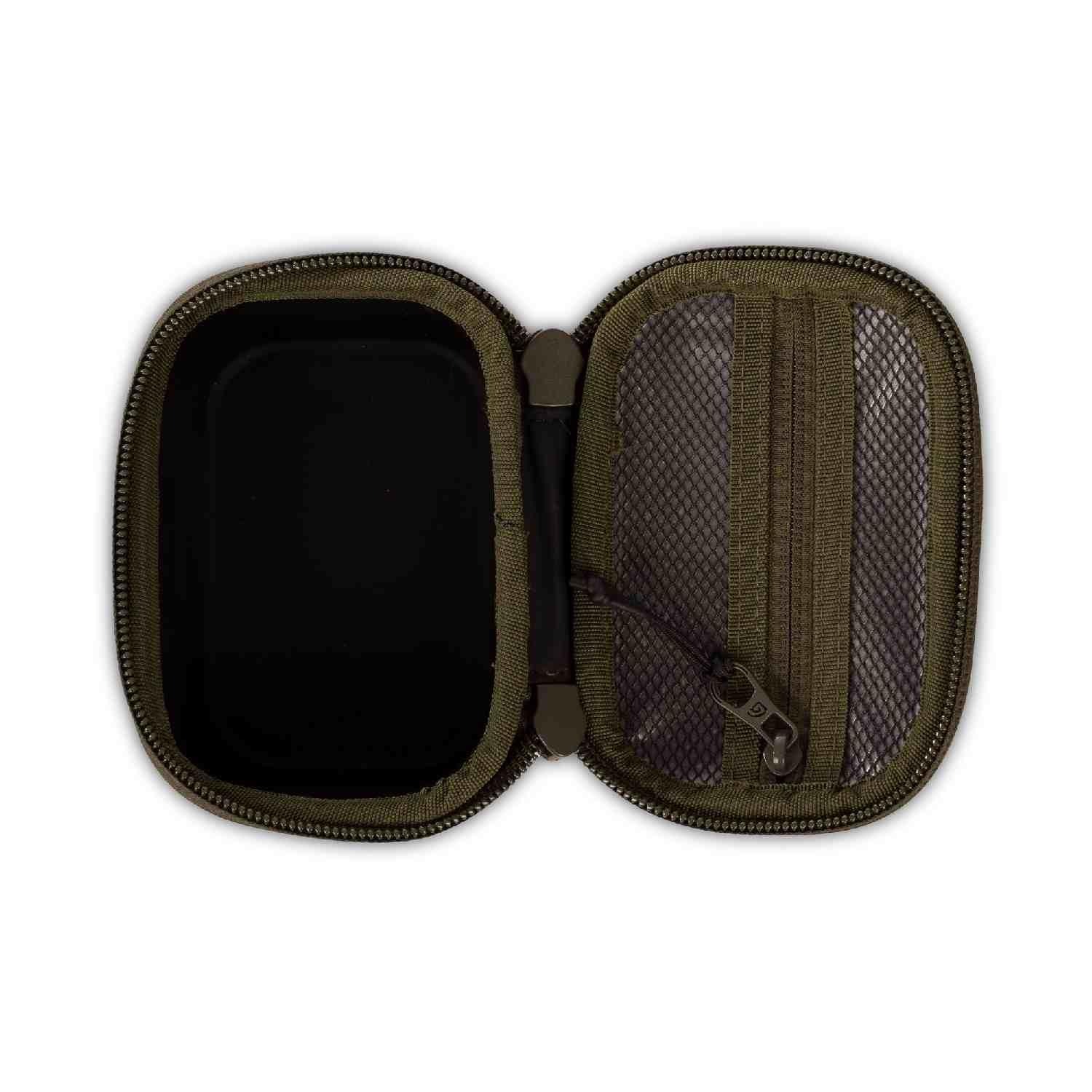 While it is the smallest in the range, it features a unique “boxy” profile (9cm height), making it surprisingly spacious for its footprint. Built with a tough EVA hard shell, it provides the impact resistance needed to protect delicate electronics from the rigors of bankside life. Wrapped in Trakker’s bespoke n-dura performance camo fabric, it’s a rugged, stylish, and modular solution that fits perfectly into the nooks and crannies of your main luggage.