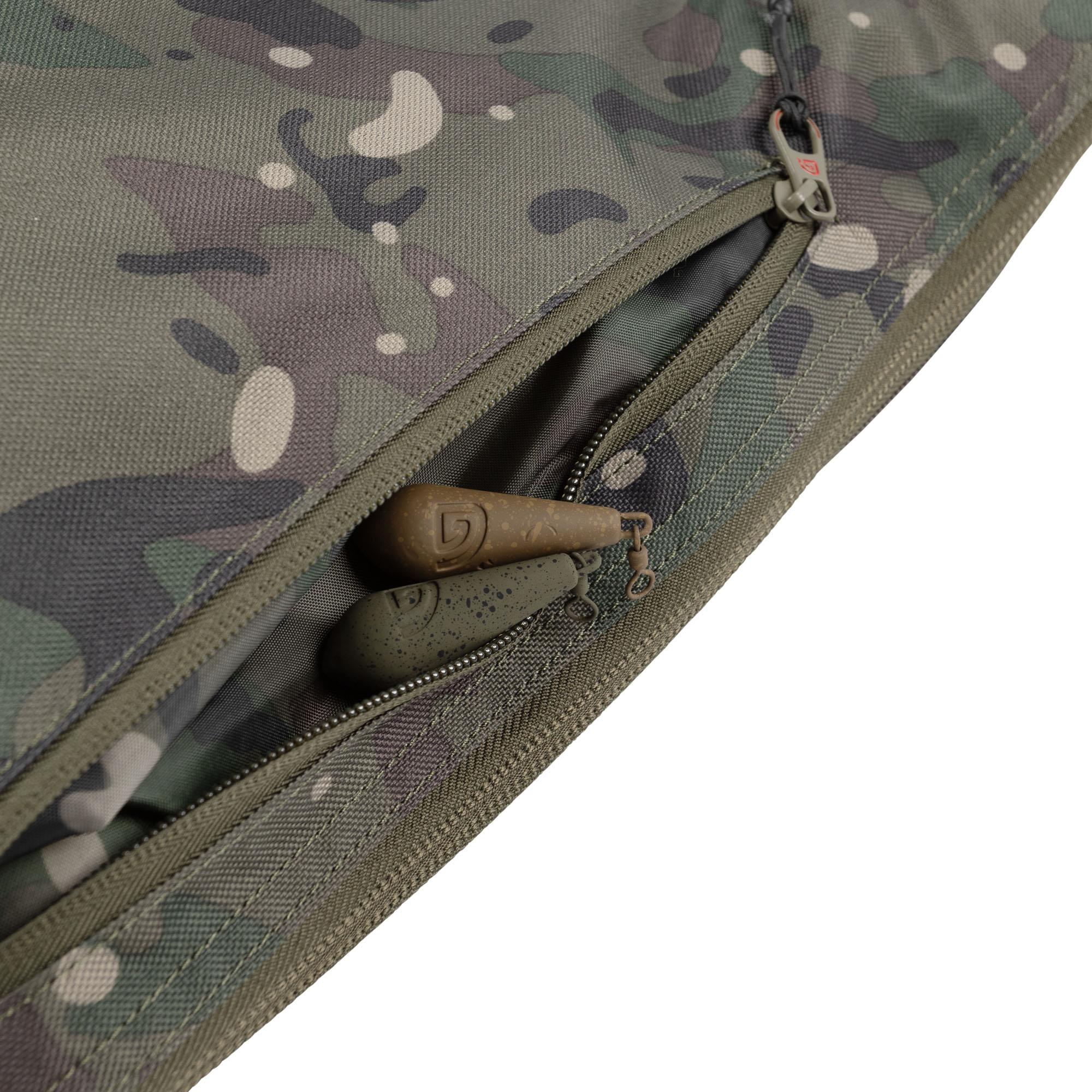 They feature an oversized reel pouch section, which is not only heavily padded but also generously sized to protect even the largest big pit reel. For added convenience, a large, zipped storage pocket is strategically placed, ideal for leads or a Spod/Spomb, keeping essential accessories to hand when loading or unloading your rods. Uncompromising in durability, the twin-direction heavy-duty main zip ensures quick and easy access to your rod and reel.