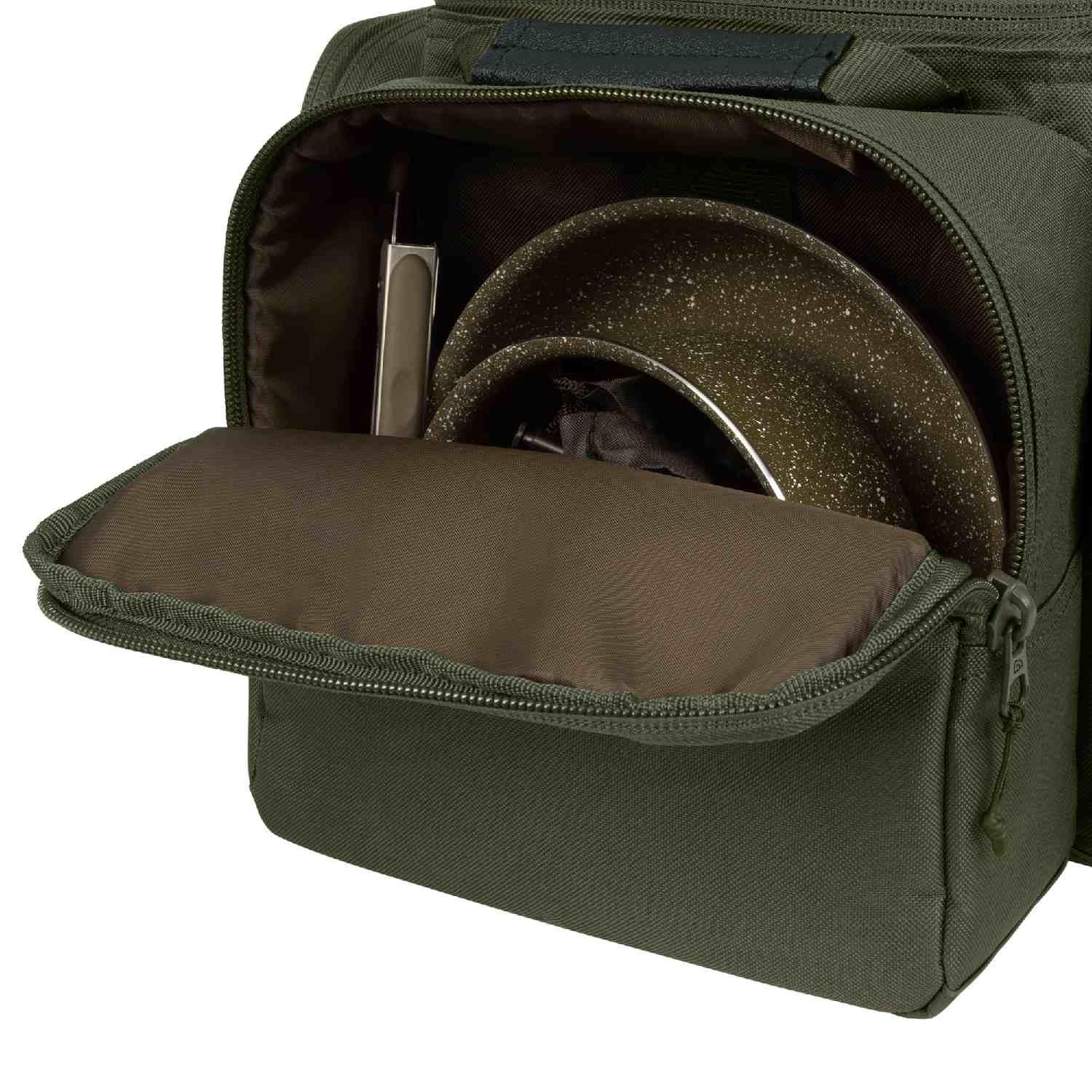 The large outer pockets give a multitude of storage options for all your cookware items. The side pockets are big enough to store stoves, kettles, gas bottles, pots and pans and other cooking essentials.