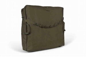 Two side-securing straps allow increased compression of the bed when not in use~*Soft, water-resistant peach skin outer finished in bespoke Trakker camo pattern.