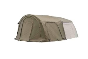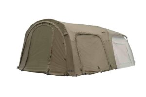 The Trakker Tempest 200 Skull Cap creates a peak to the front of the Tempest 200, which gives greater protection from the rain without compromising the view of the lake. Not only will the Skull Cap give additional protection from the weather, it also adds a second skin to the top of the shelter to combat condensation and retain heat, and unlike a full overwrap, it can be left in place when the bivvy is packed down.
