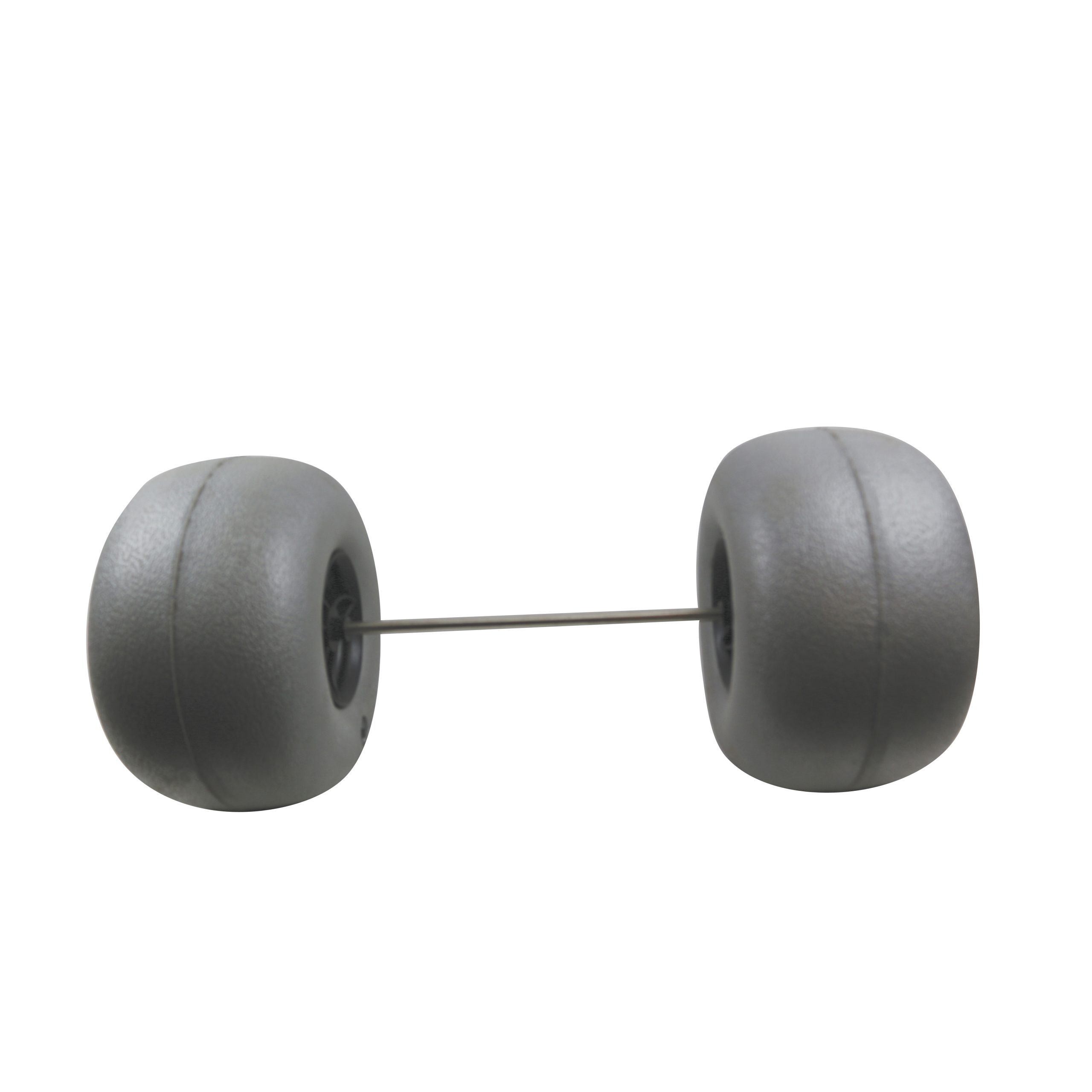 Designed for the Tronixpro Beach Trolley but can be universally fitted to any other type of trolley too, the base package includes an axel and two wheels, so is easy to fit to other trolley types. This is a serious upgrade to any trolley, giving the benefits of large, pneumatic tyres to carry weighted loads across a variety of different terrains. The large, 18cm rubber wheels are filled with air under pressure. This pressure spreads the load efficiently, so the weight of the trolley is evenly spread over a variety of different surfaces. This is especially useful when carrying loads over a muddy field, soft sand or uneven ground. Made from a strong rubber that makes them durable enough for use across most terrain types from sand, pebbles, shingle, small rocks, piers, breakwaters, roads, tracks, fields, gravel tracks etc. Although these tyres are ultra-tough, we’d recommend caution when using on very sharp stones or rocks.
