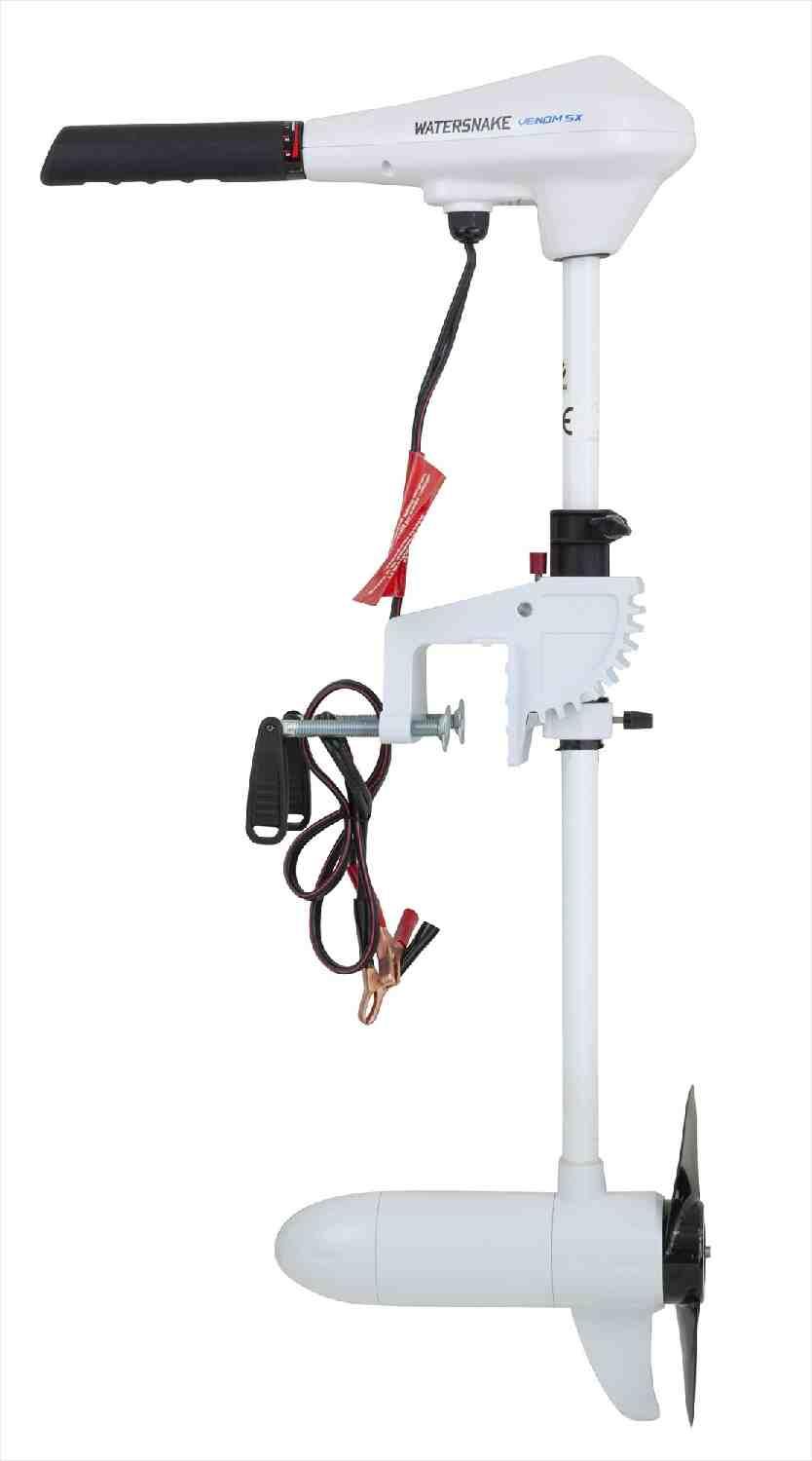 Our Watersnake Venom SXW electric motors provide saltwater anglers with a versatile range of tiller-steer transom-mount motors that are loaded with clever features. The Venom SXW range comprises five motor designs. The 34lb and 54lb in the 26” short shaft design are perfect for canoes, tenders, inflatable boats and small tinnies. The 44lb/36”, 54lb/36” and 54lb/42” are each suited to boats ranging from small tenders and tinnies up to dedicated estuary and inshore sportfishing boats. The 34lb motors have a two-blade propeller.