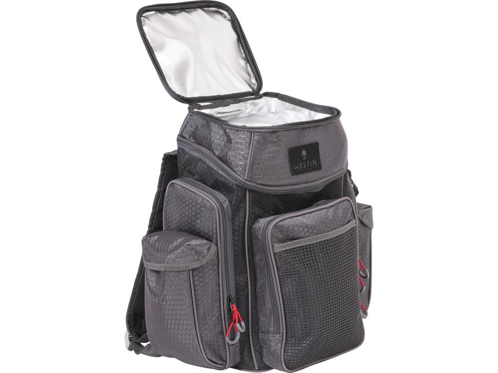 W4 Backpack Plus swallows all you need for a day at the water. The head compartment cooler keeps your food fresh. This bag comes with Westin Tackle Boxes, several pockets, hook and loop closure tool straps and strong zippers. The adjustable and padded straps make the carrying comfortable.