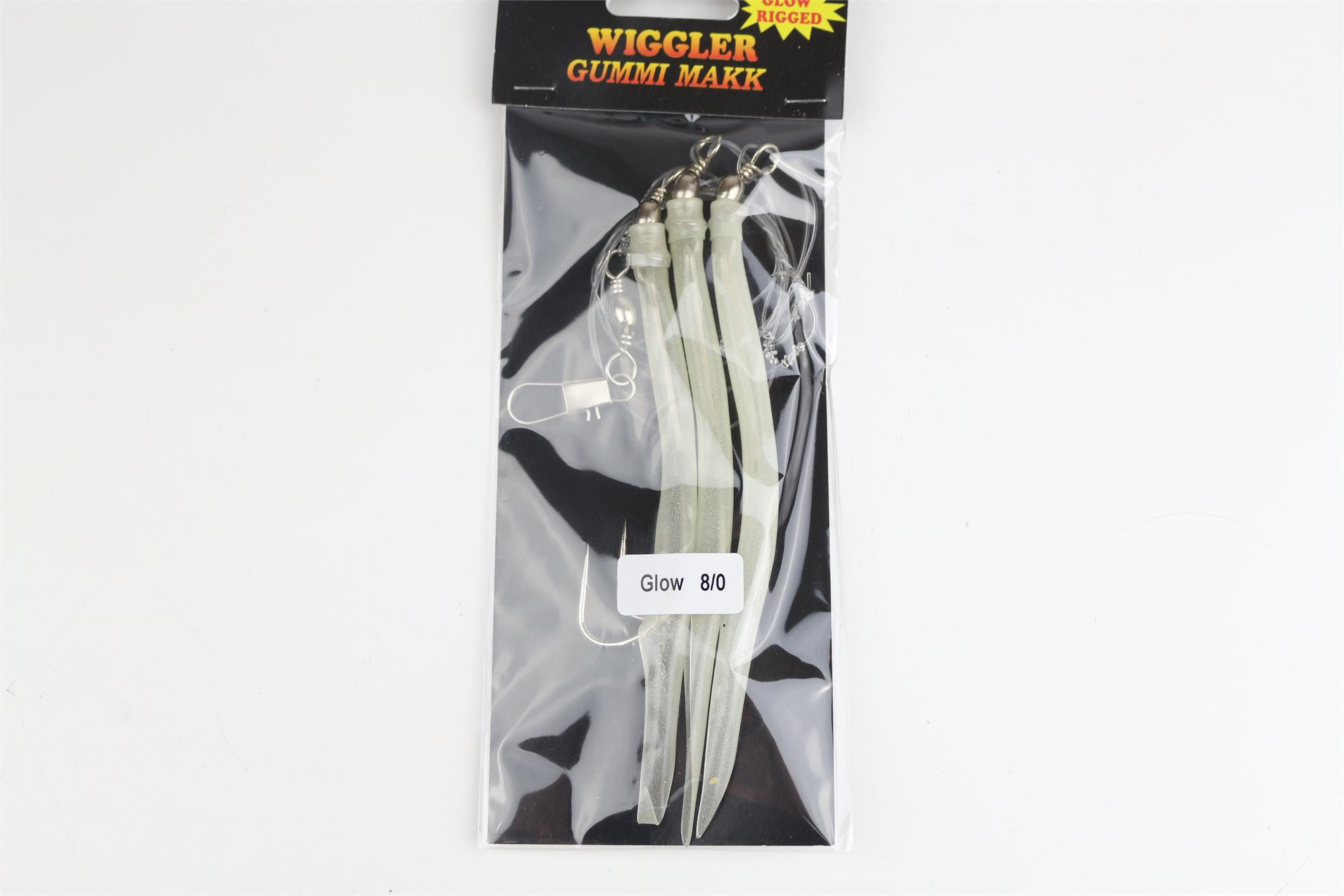 The original extra tough Gummi makks from Sweden is simple but an ultra-effective sand eel imitation used by many nordic commercial fishermen for Cod,Ling Coalfish and Halibut. Commonly used on droppers above a pirk or large weighted shad.Fitted with ultra-strong hooks attached by a swivel on the eye.Three Gummis makks per trace rigged to quality tough mono. These are deadly for Cod and the rig of choice by Scandinavian’s