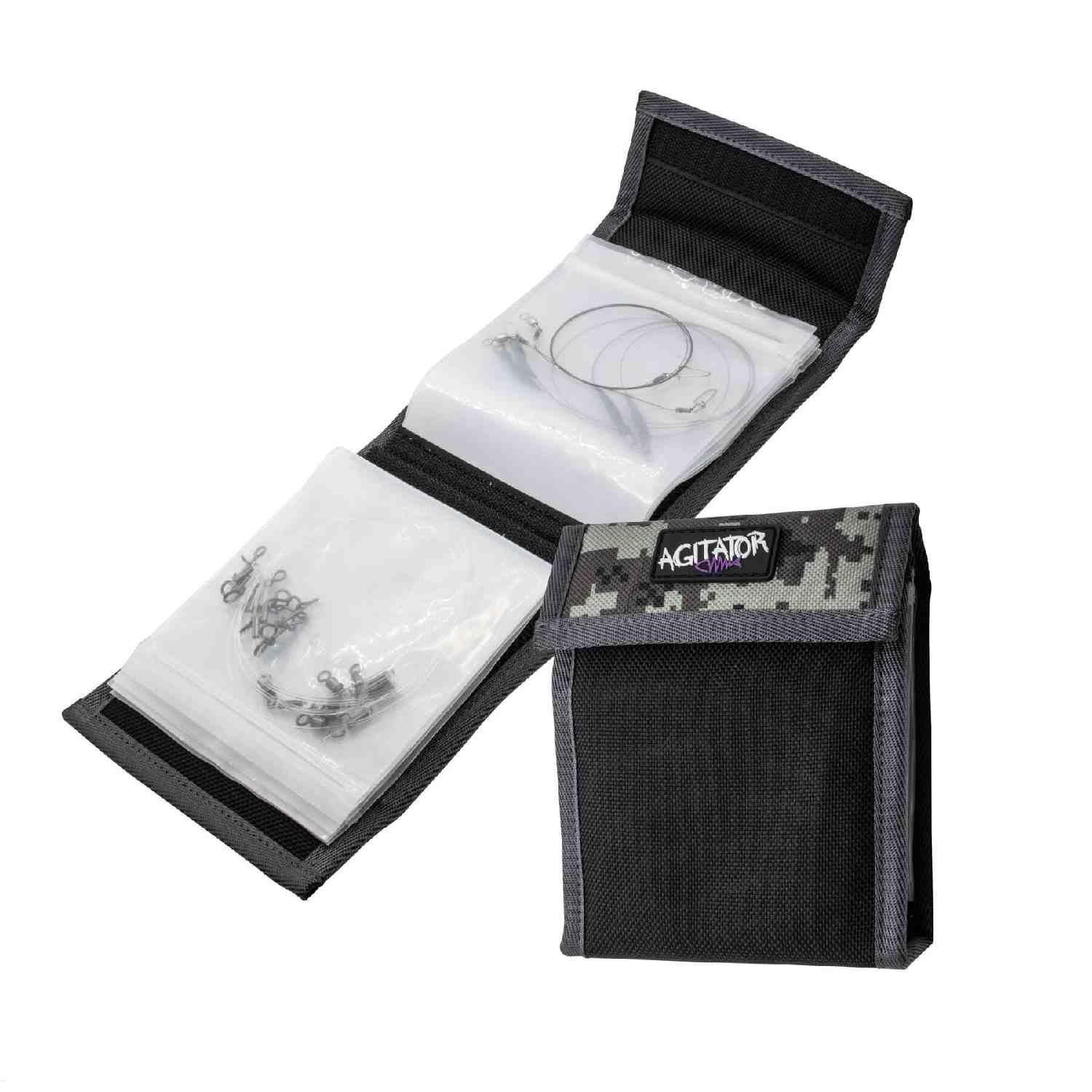 The Agitator trace pouch is the perfect solution for storing pre-made lure traces. Made from ultra durable 1200 denier material! Containing 10 heavy duty removable zip lock pouches and two additional internal mesh pockets ideal for storing scissors or split ring pliers. Its compact size means traces and trace related equipment can be easily stored in a jacket pocket or lure bag for easy tangle free access.