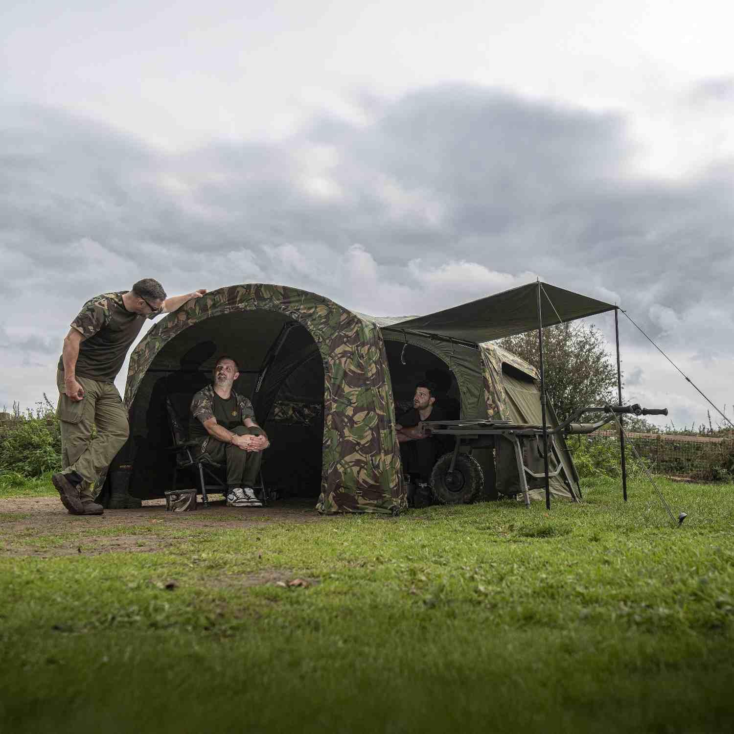 This is an Epic addition and creates are large porch extension which makes a great place for socialising with friends in comfort or simply just for storing additional equipment. The side doors can be rolled back to improve air flow and visibility. Furthermore, they can be pinned open gullwing style with the support poles and guy ropes supplied, making a great place to for increased shade or to park your barrow, with the added undercover protection. The Tactical Solid Infill from your Epic bivvy or Tactical Mozzy front can be zipped straight into the front of the Epic Tactical extended wrap to add further protection and privacy. The Extended wrap also covers the top of the Epic bivvy, which greatly improves insulation, while helping to reduce the build-up of condensation.